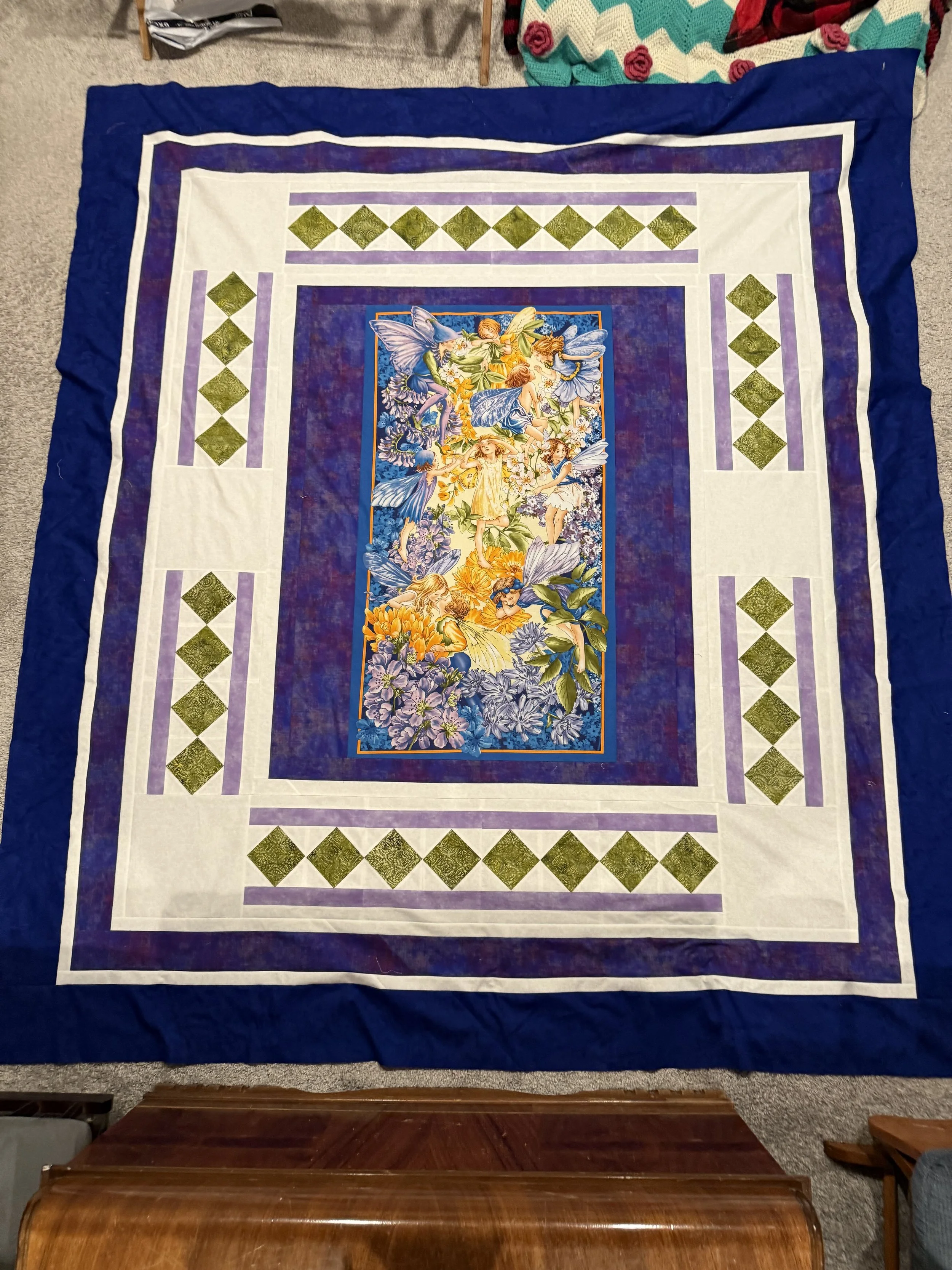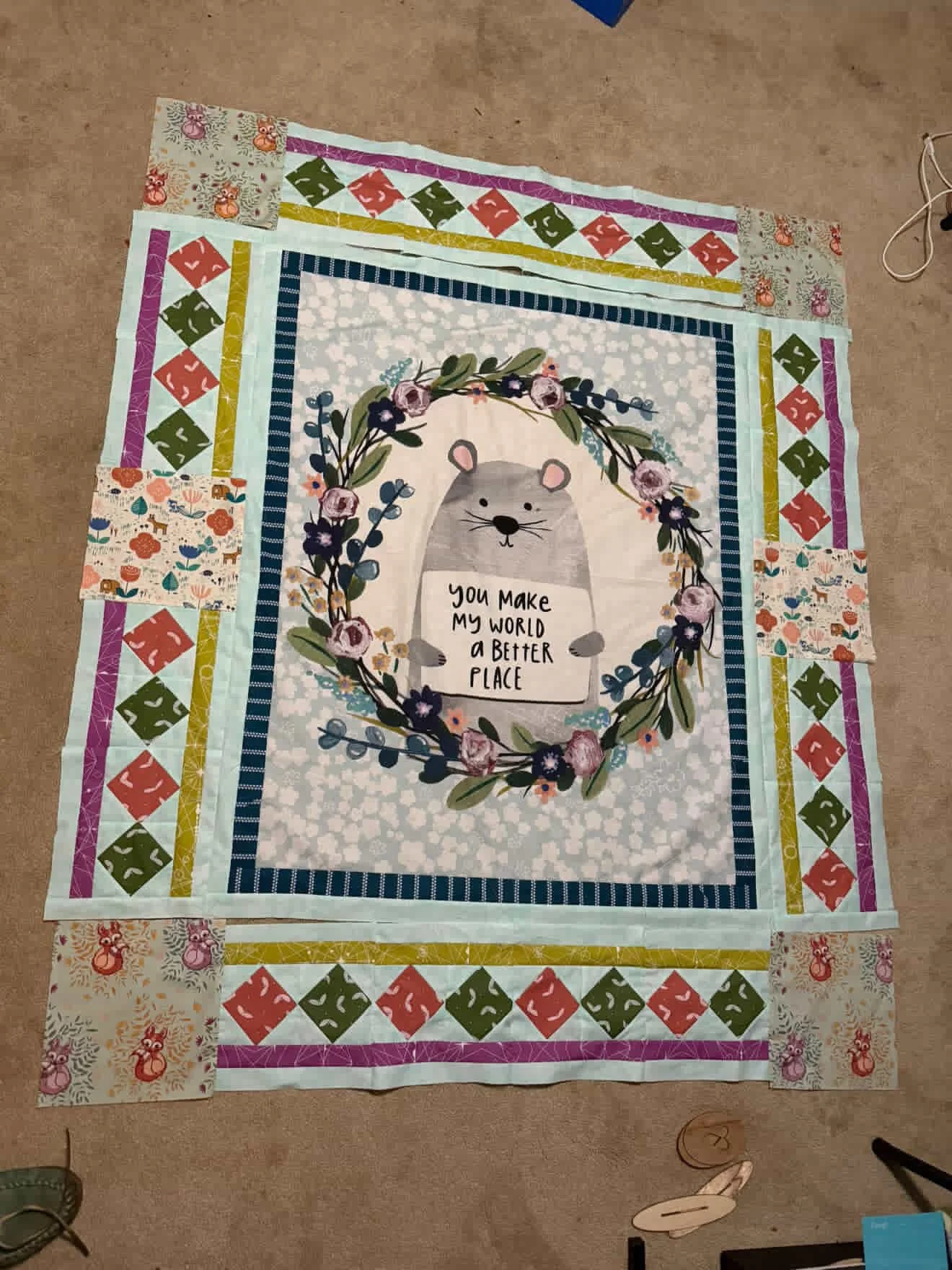 Rachel Fields went above and beyond! She was able to use her panel in a way that turned the quilt on its side. I love the creativity and talent that went into this quilt. You’re amazing, Rachel. Thank you!